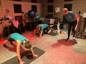 Een keer in de week een groepstraining onder begeleiding, bestaande uit een warming up, een afwisselend circuit (cardio en spieren) en een cooling down.