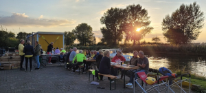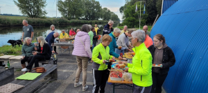 Tussen veel muziek langs de route voeren onze roeiboten ook heen en weer.