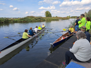 Belangstellenden konden mee in de boot om het roeien eens te proberen.